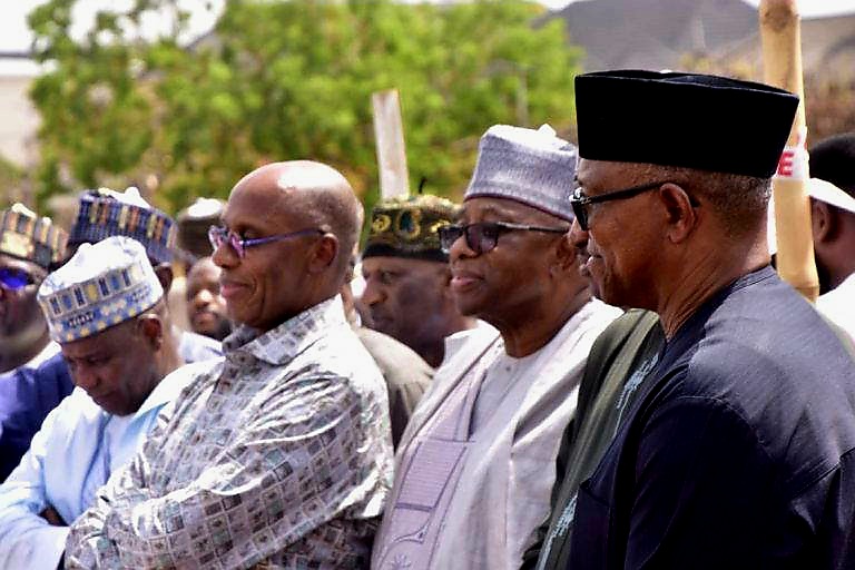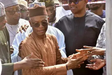 Former Anambra State governor and presidential candidate, Peter Obi, on Sunday joined dignitaries at the burial ceremony of the late mother of former Kaduna State governor, Nasir El-Rufai.